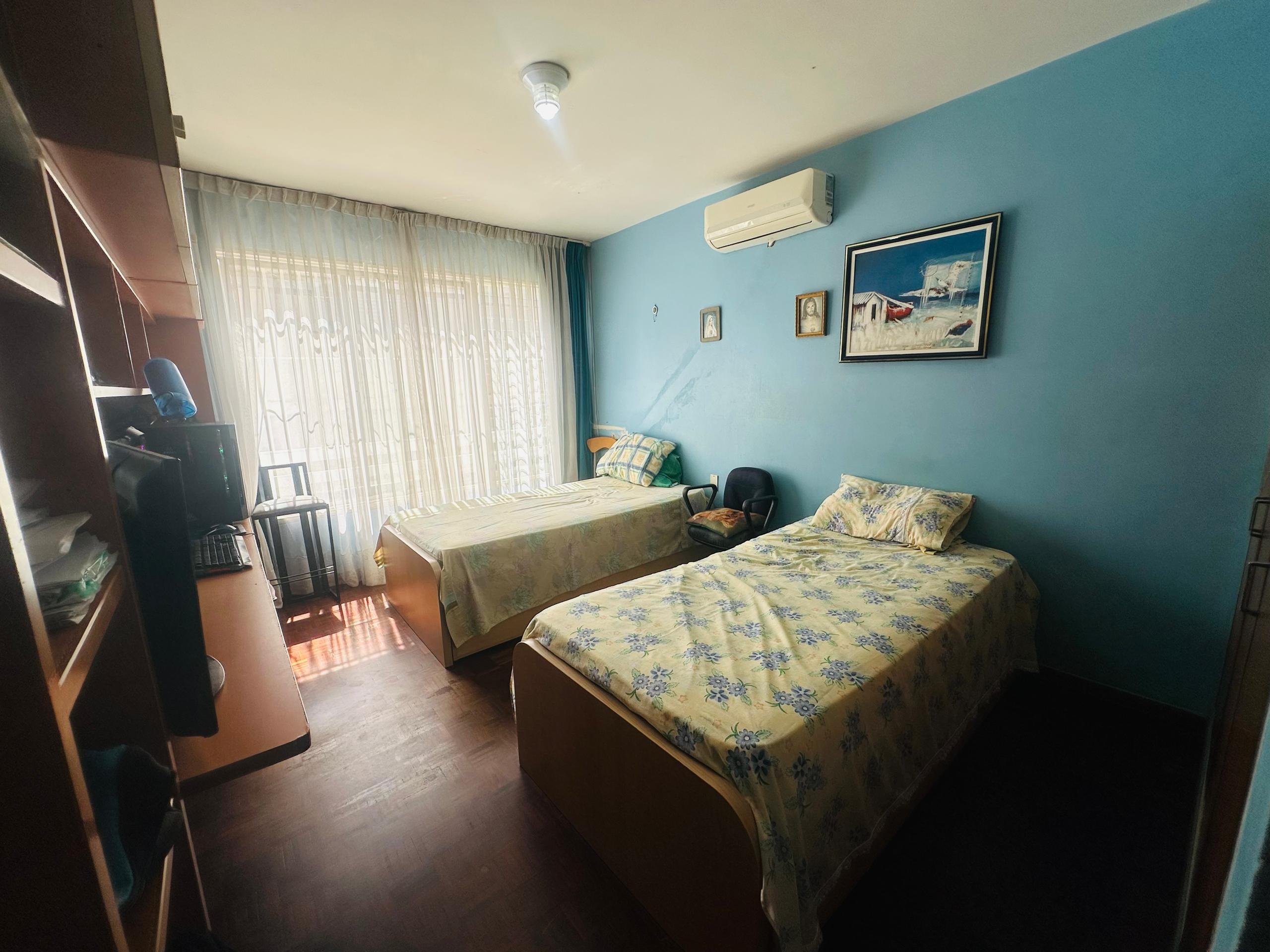 .- 3 habitaciones + habitacion de servicio con baño:  Habitación principal con baño y 2 habitaciones que comparten un baño (pisos de parquet)