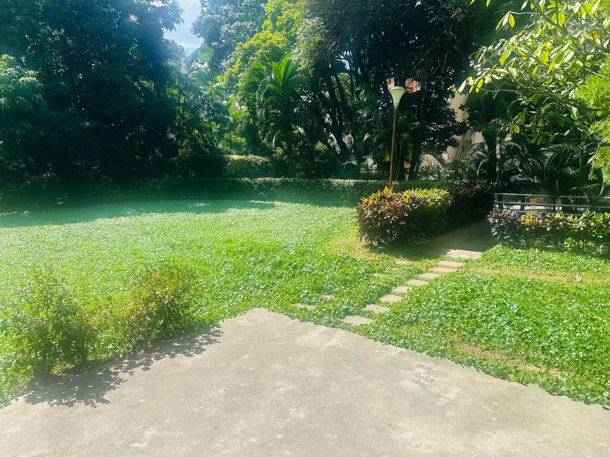 .- Un amplio parque con caminerias y pista de bicicletas